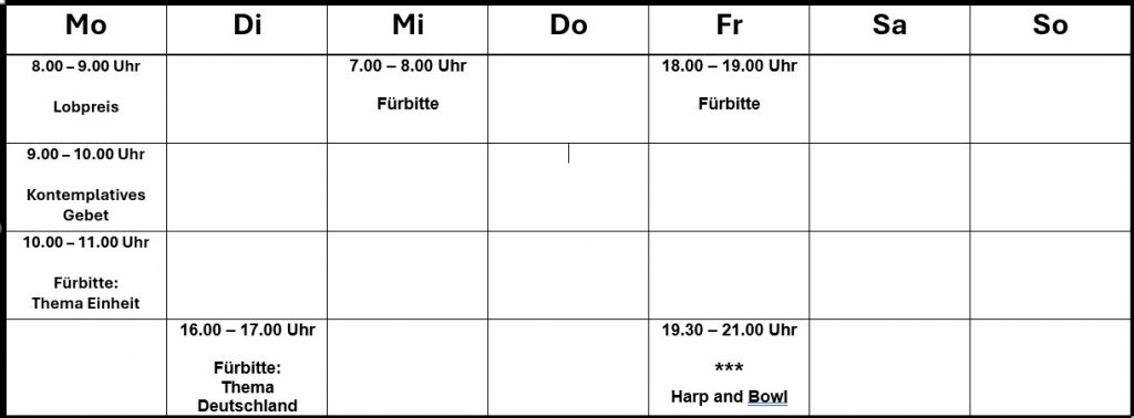 *** Die Harp & Bowl Stunden finden am folgenden Terminen statt: